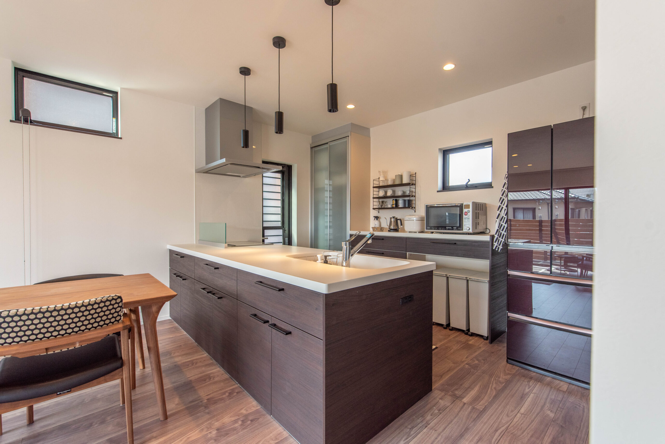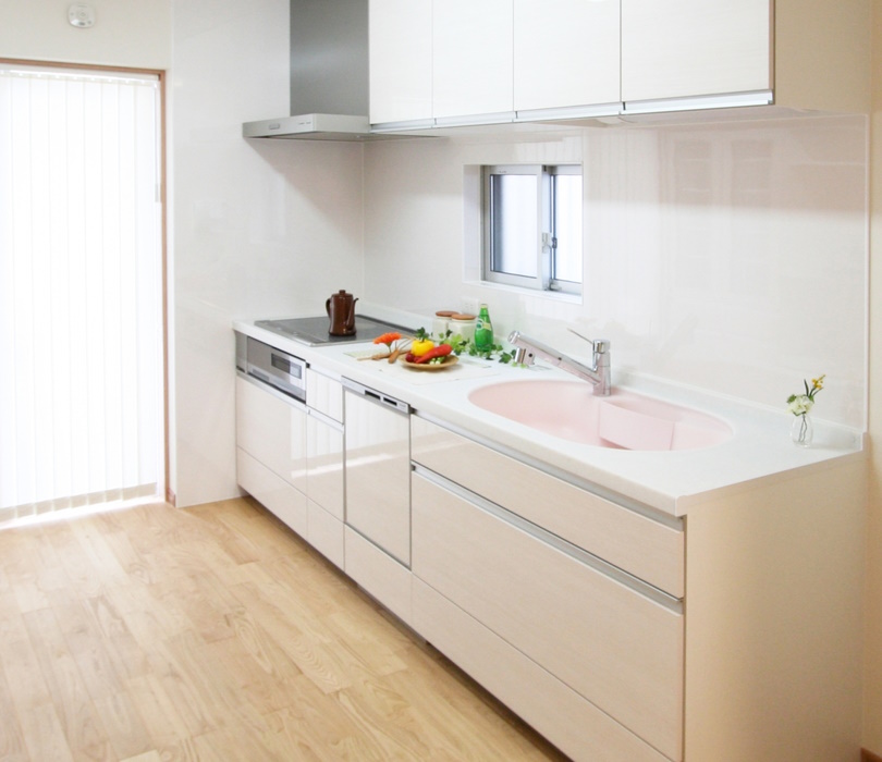 L型キッチンやU型キッチンのようにコーナー部分を必要としないため、マンションやコンパクトな住宅など、キッチンスペースが限られている場合でも設置しやすいのが大きなメリットです。壁付けにすれば、ダイニングスペースをより広く確保することもできます。